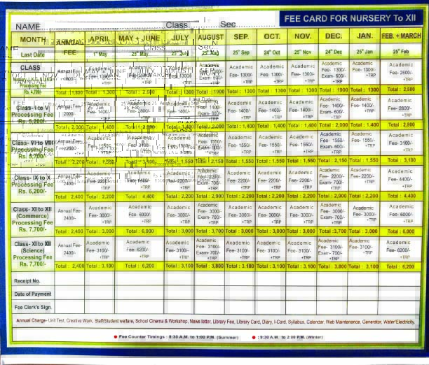School fees should be paid on or before the due date mentioned on the fee card. To avoid rush and to save time,